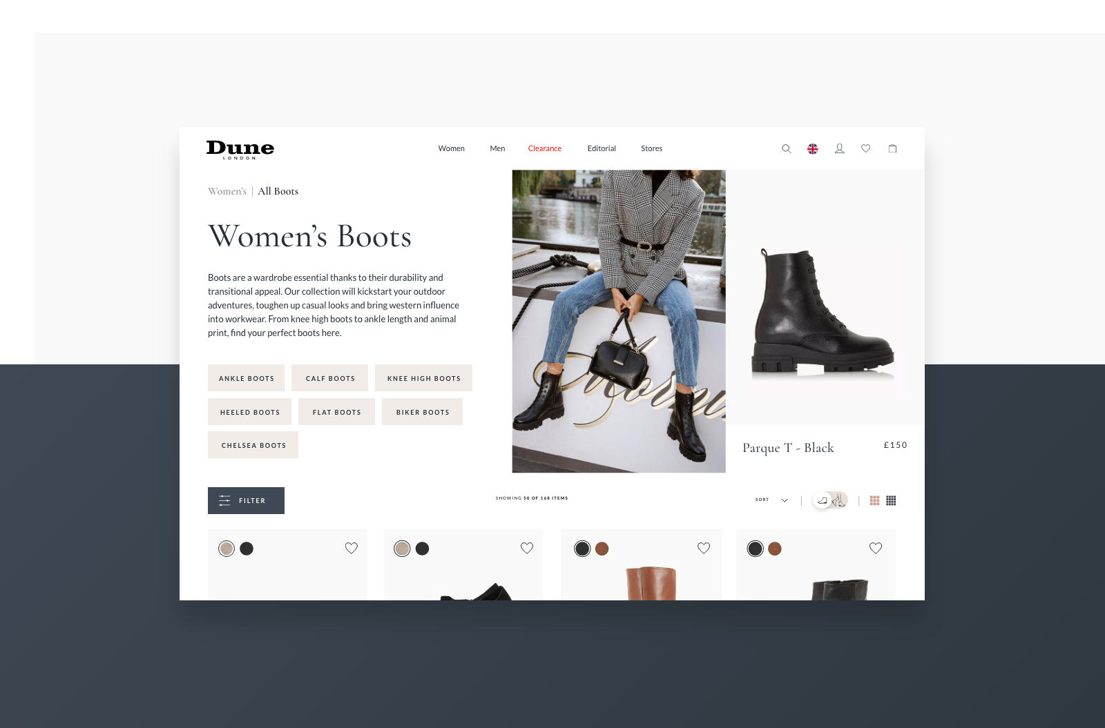 Dune London’s mission is to be a destination for brand expression, customer engagement and omni-channel experience, with a single view of the consumer. This mission started with creating a website that treats the user with respect, space and delivers choice for their own individual browsing nature.