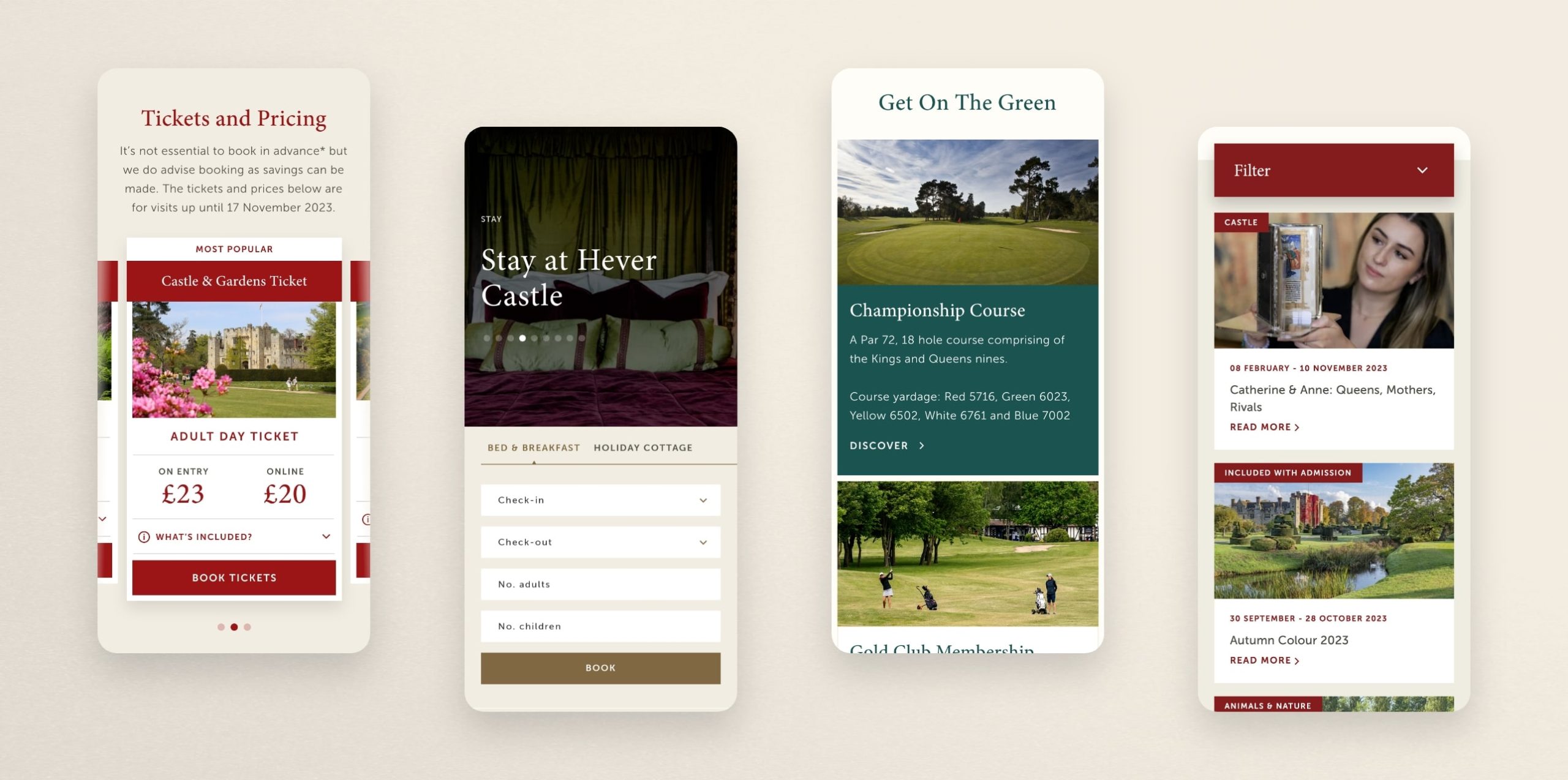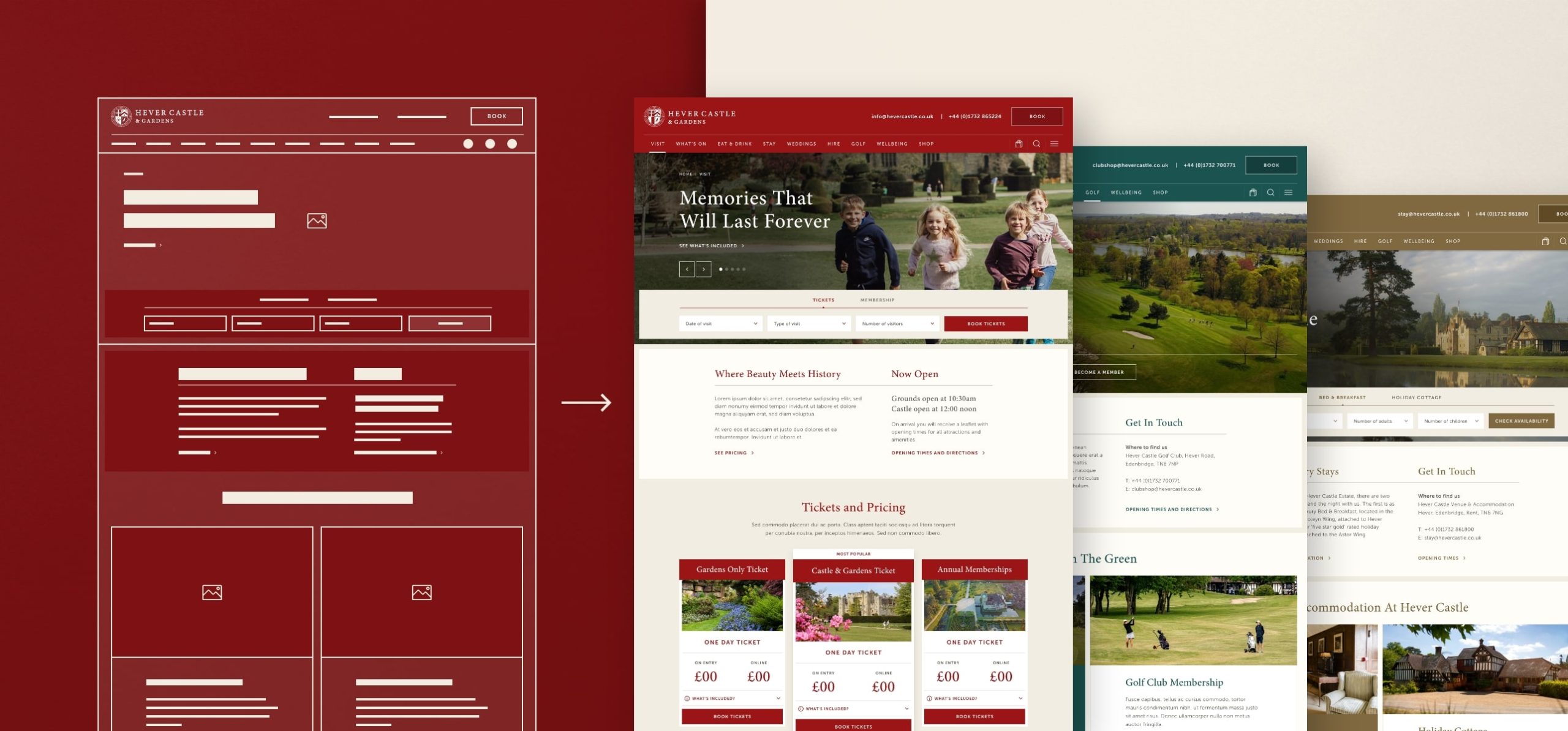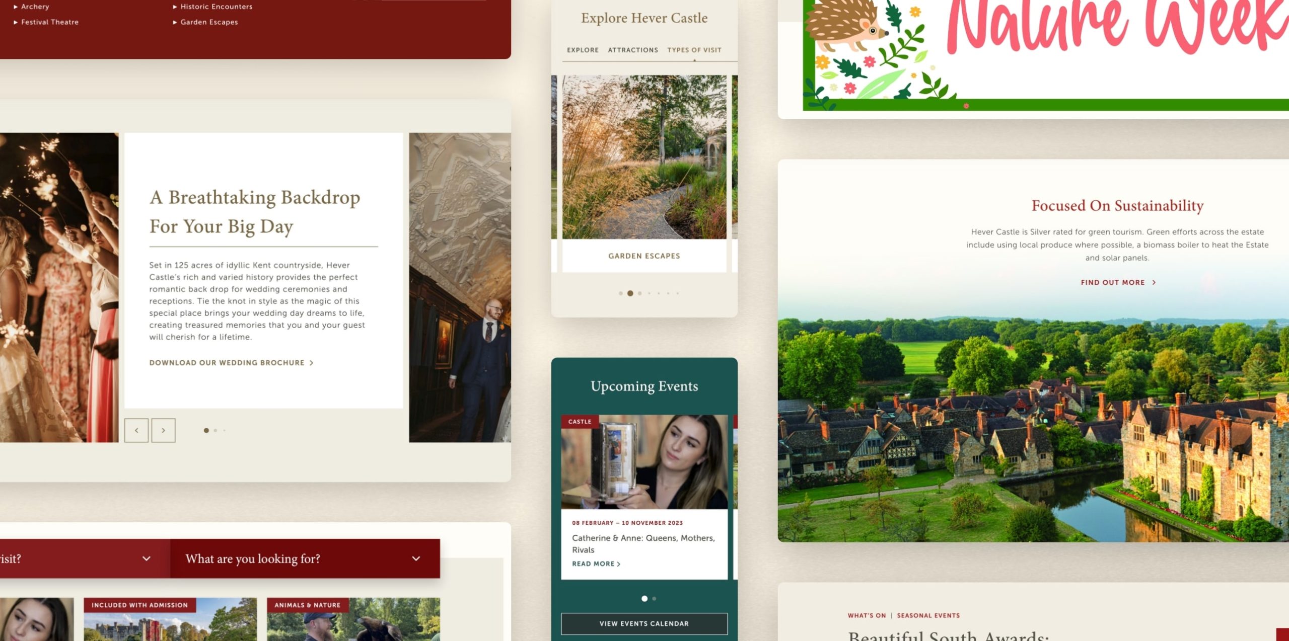 After launching a successful rebrand for Hever Castle one of the biggest tasks was to not only redesign the website look-and-feel, but to rethink the strategy. A big part of the new website design brief was focussing on UX through a variety of different stakeholders journeys. Each journey mapped to the different facets and business divisions at Hever Castle. Ultimately the new brief was not only to offer relevant paths for each stakeholder, but to cross-sell and promote the amazing experiences at Hever Castle and unify those experiences into one.